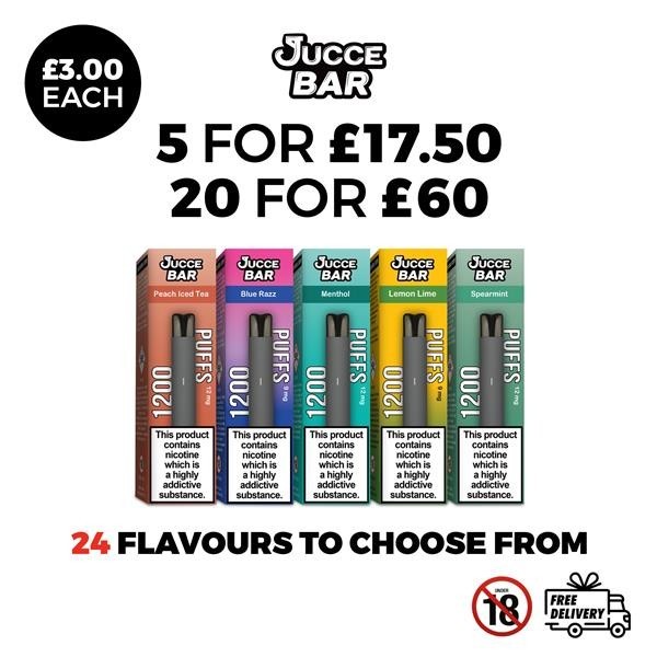 Jucce Bar 1200 Vape Kit | 9mg & 12mg | 2x2ml Pods |  24 Flavours